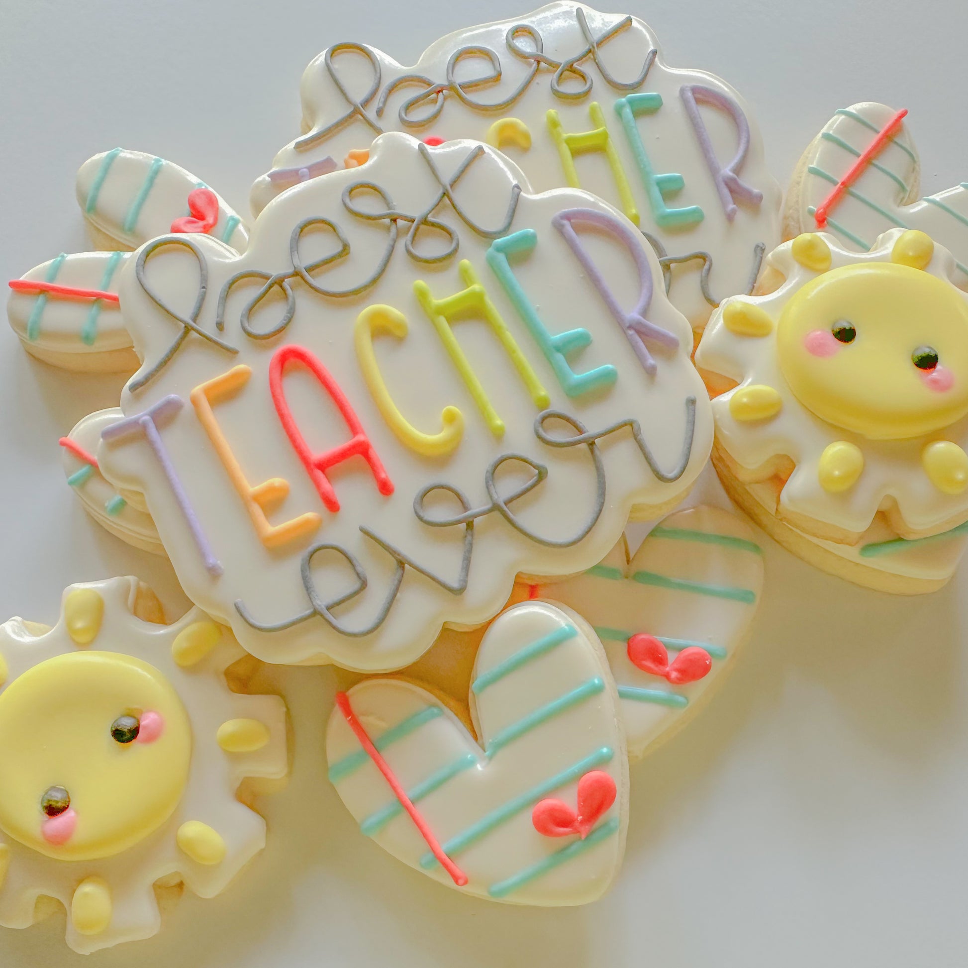 The sweetest way to celebrate the first day of school ! This Best Teacher Ever cookie makes the perfect teacher gift or back to school treat. A small gesture with a big message, because teachers deserve a little extra sweetness. Individually heat sealed, packaged in a clear box with decorative backer, coordinating tag and stretch loop. This listing is for one Best Teacher Ever cookie only. Cookie is approximately 4.5 inches.