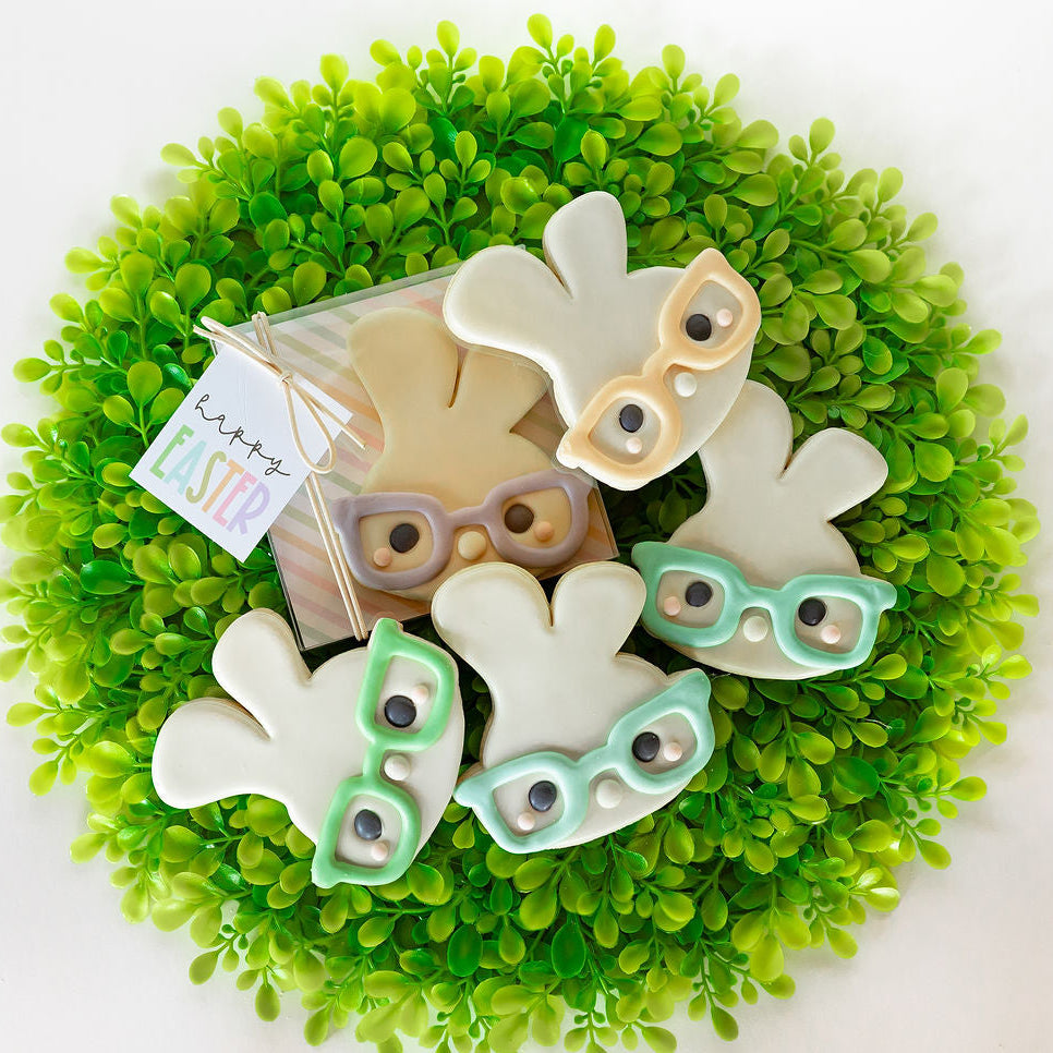Sweet, handsome and ready for Easter. Individually heat sealed. Packaged in a 4.5” x 4.5” clear box with coordinating backer, stretch loop bow and tag. Cookie is approximately 4”.